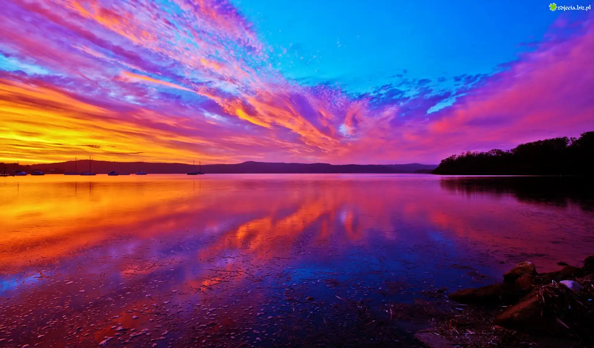 Zdjęcie Zachód, Słońca, Jezioro, Chmury