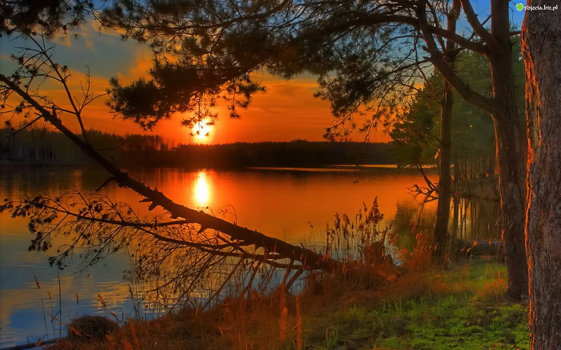 Zdjęcie Zachód, Słońca, Jezioro, Drzewa