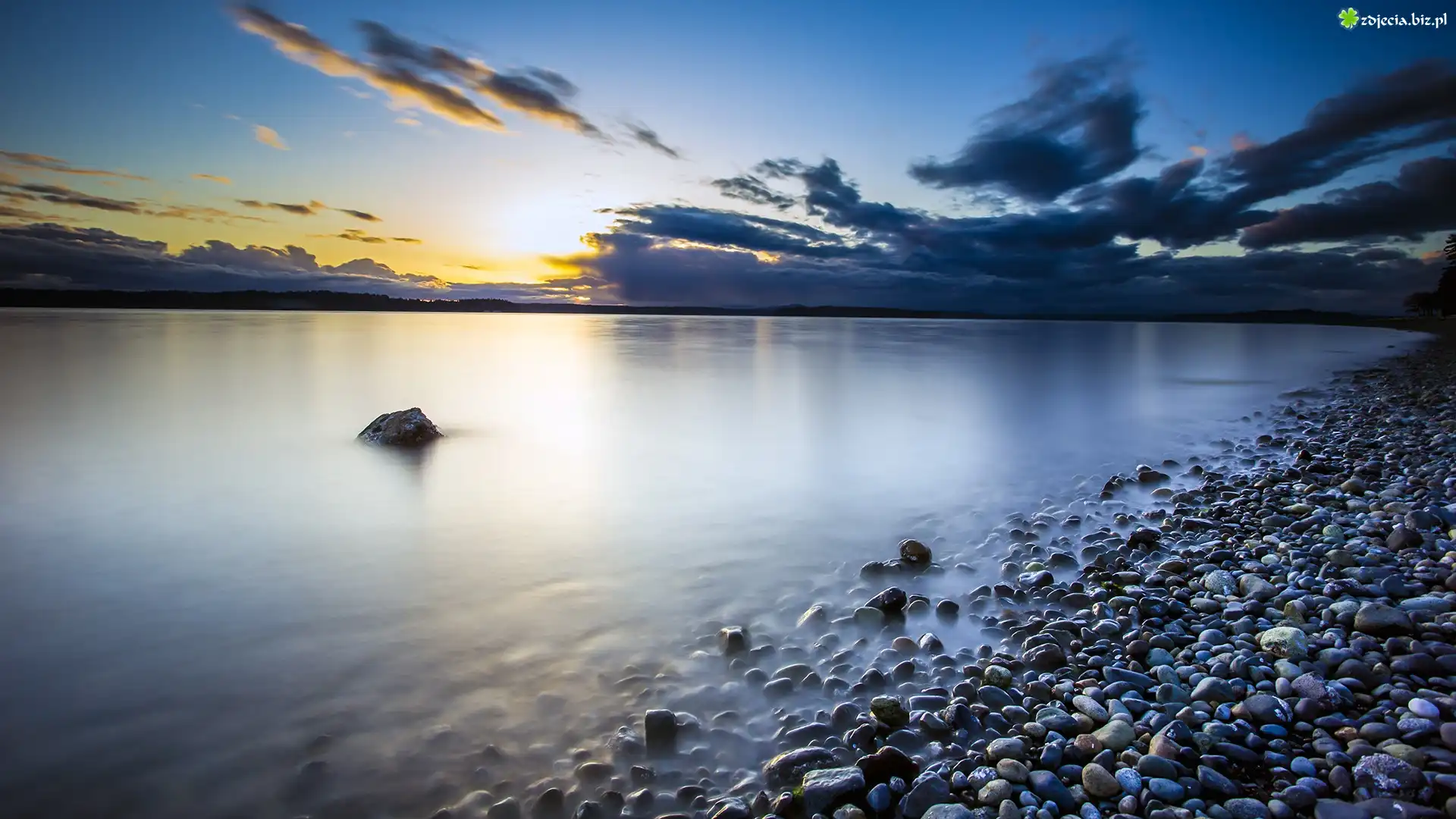 Zdjęcie Zachód, Słońca, Jezioro, Kamienie