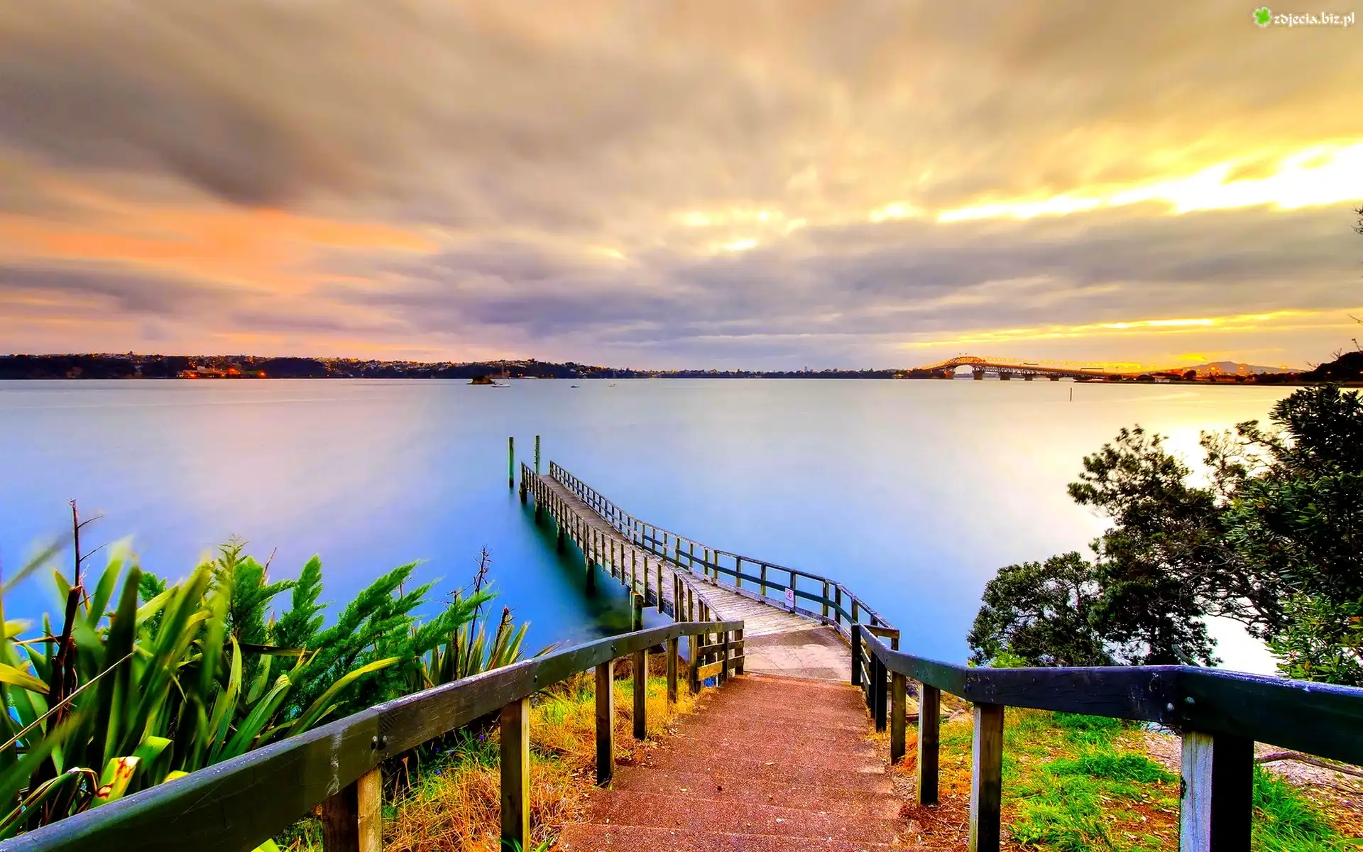 Zdjęcie Zachód, Słońca, Jezioro, Molo