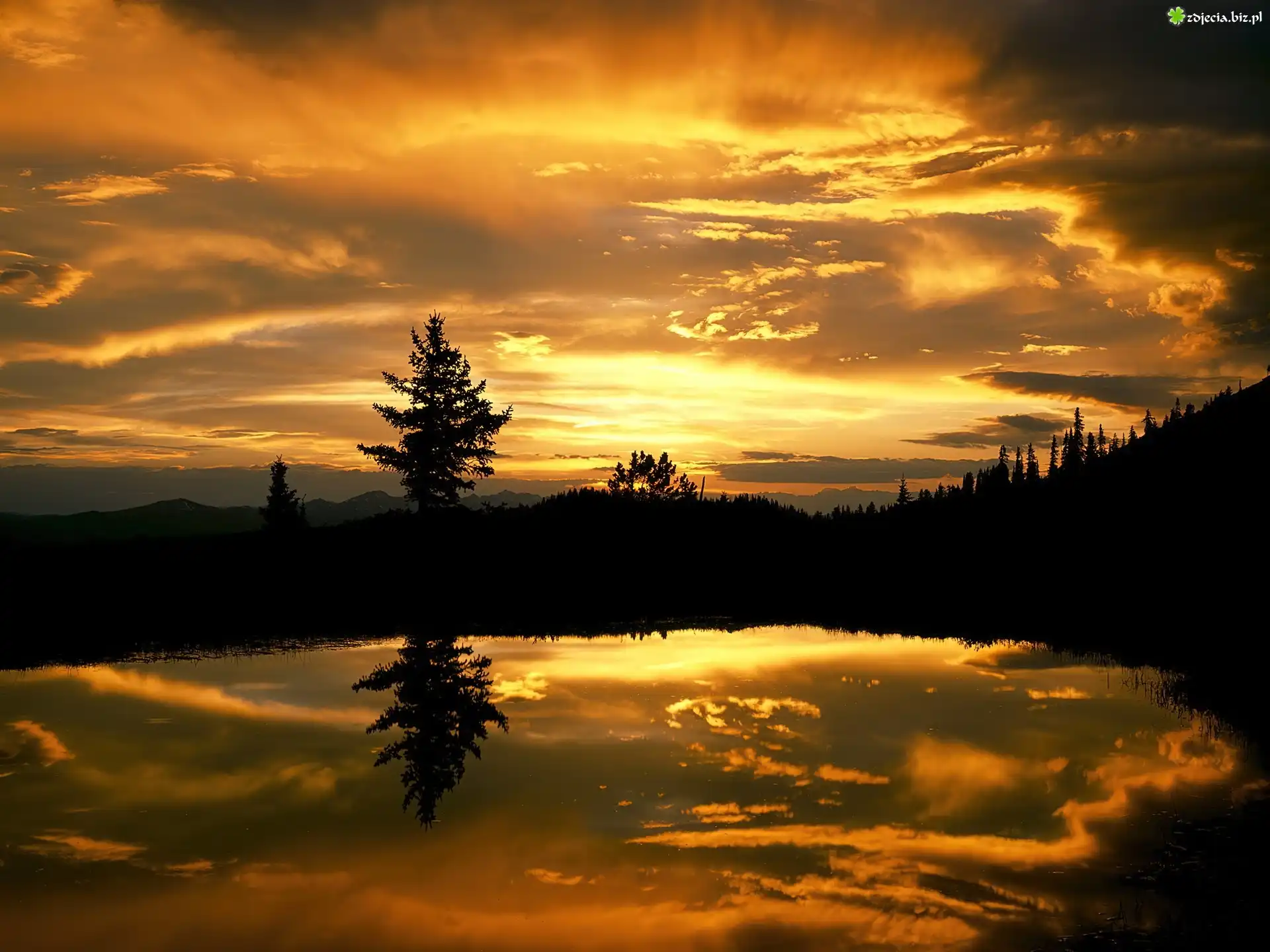 Zdjęcie, Zachód, Słońca, Jezioro, Odbicie