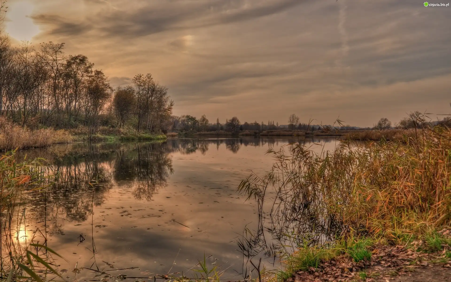 Zdjęcie Zachód, Słońca, Jezioro, Roślinność
