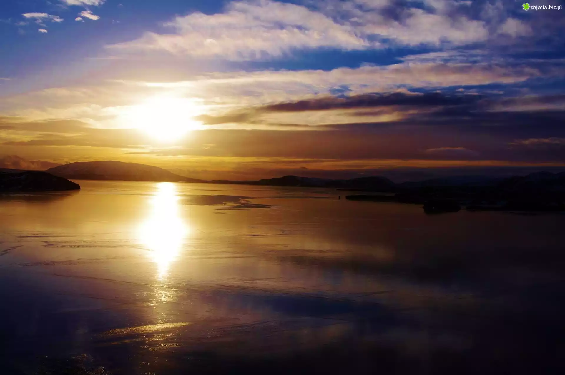 Zdjęcie, Zachód, Słońca, Jezioro, Skały