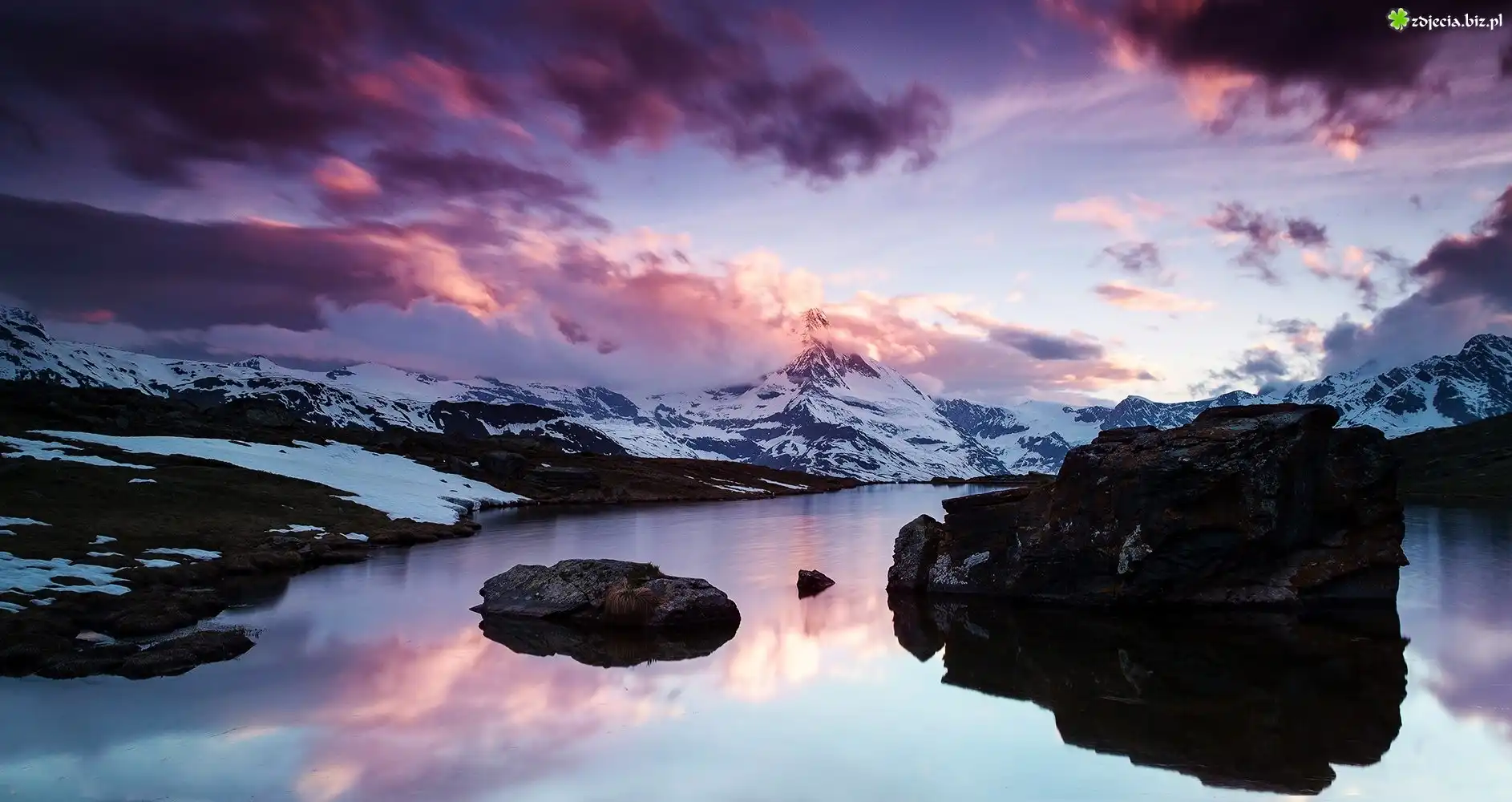 Zdjęcie Zachód, Słońca, Jezioro, Skały