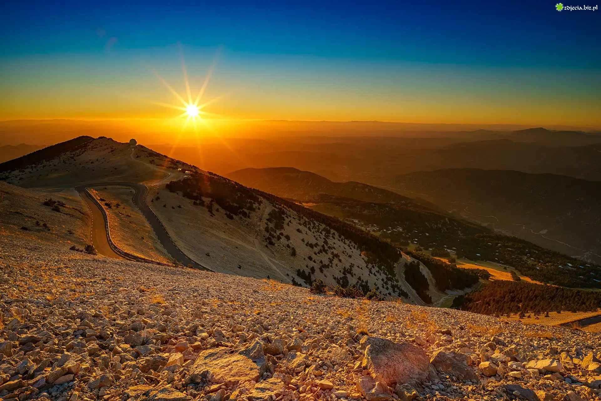 Zdjęcie, Zachód słońca, Góry, Kamienie, Droga