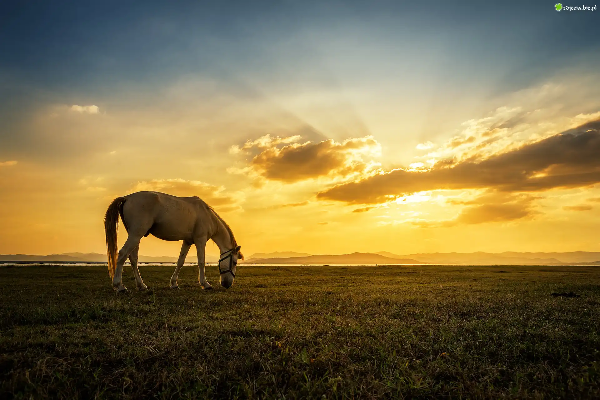 Zdjęcie Zachód słońca, Koń, Łąka