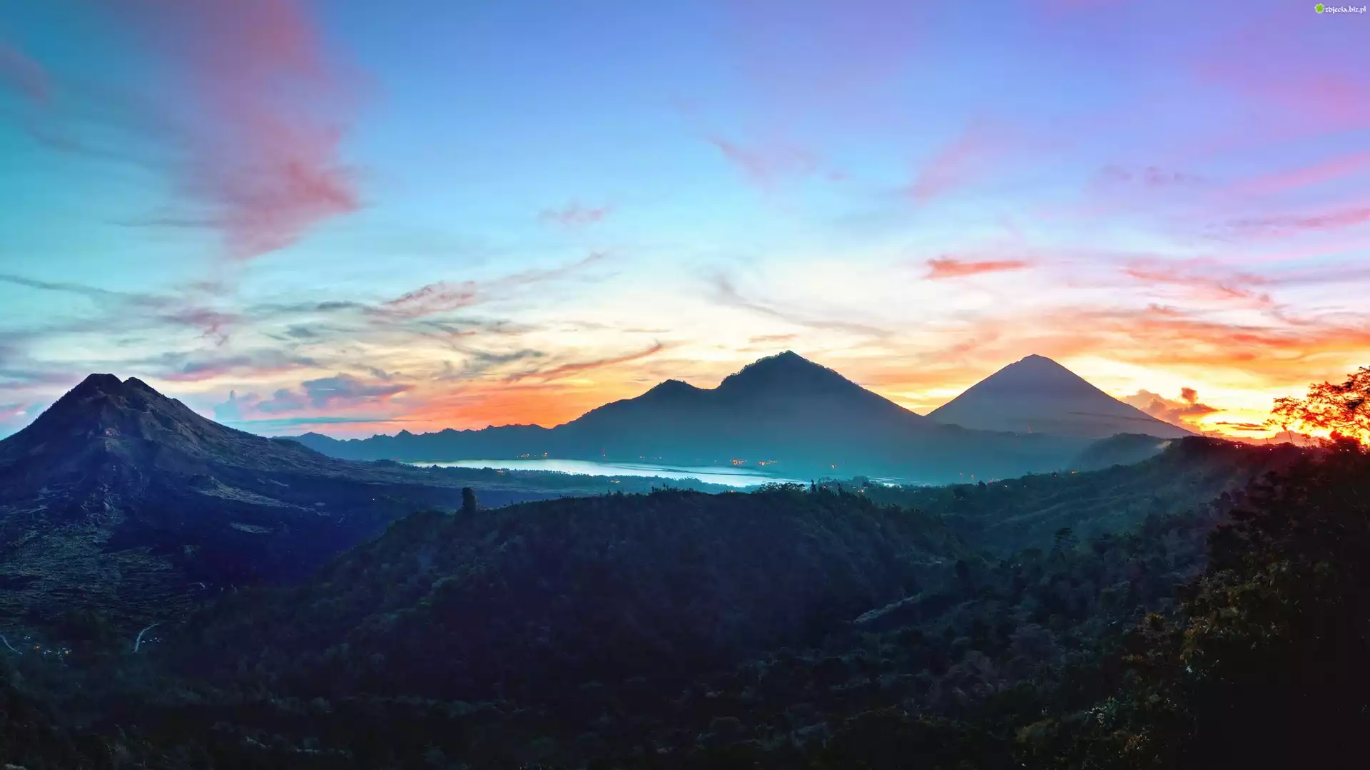 Zdjęcie Zachód, Słońca, Góry, Las, Jezioro