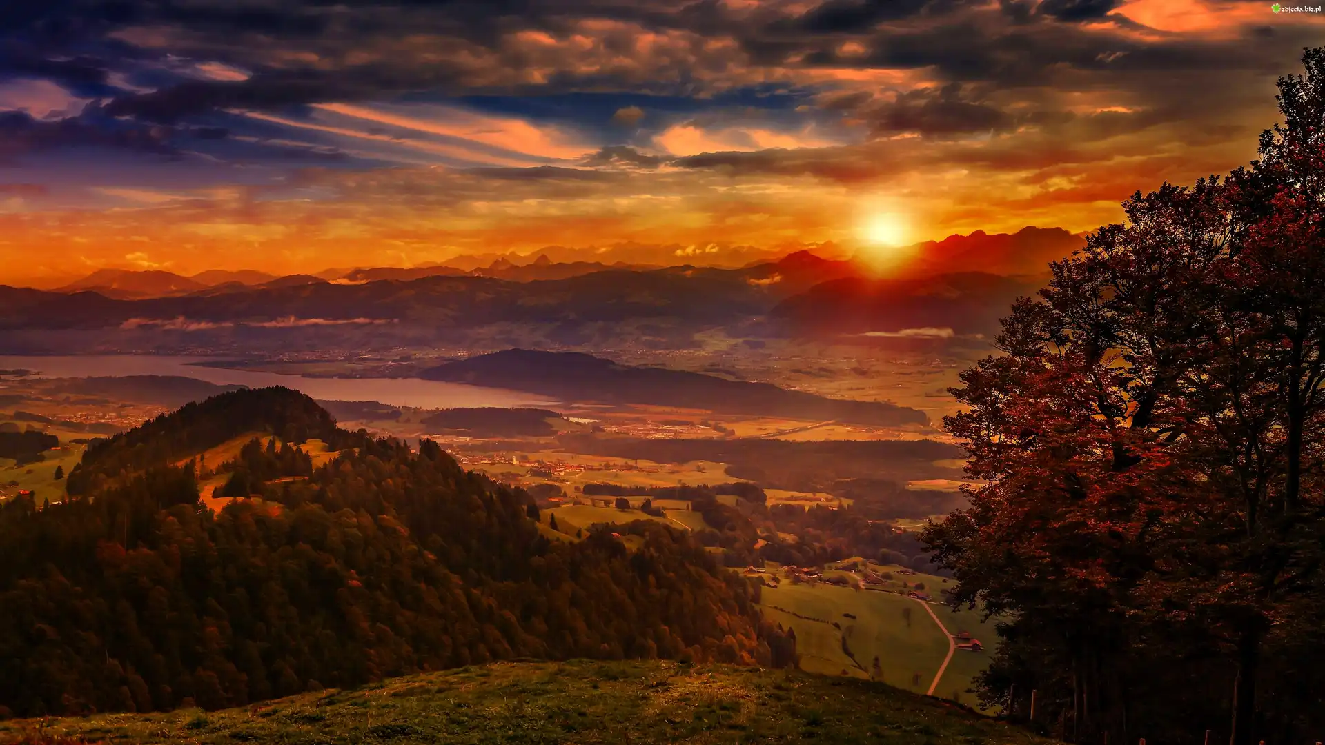 Zdjęcie Zachód Słońca, Góry, Lasy, Dolina