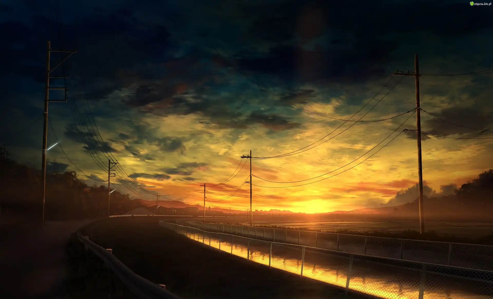 Zdjęcie Zachód, Słońca, Słupy, Linie, Słupy