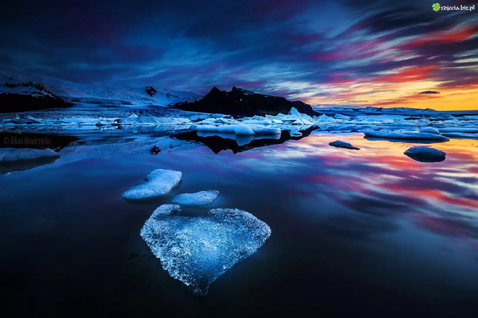 Zdjęcie Zachód, Słońca, Kry, Lodowe, Morze