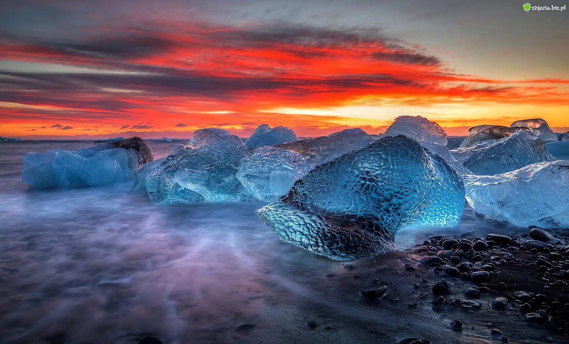 Zdjęcie Zachód, Słońca, Bryły, Lodu, Kamienie