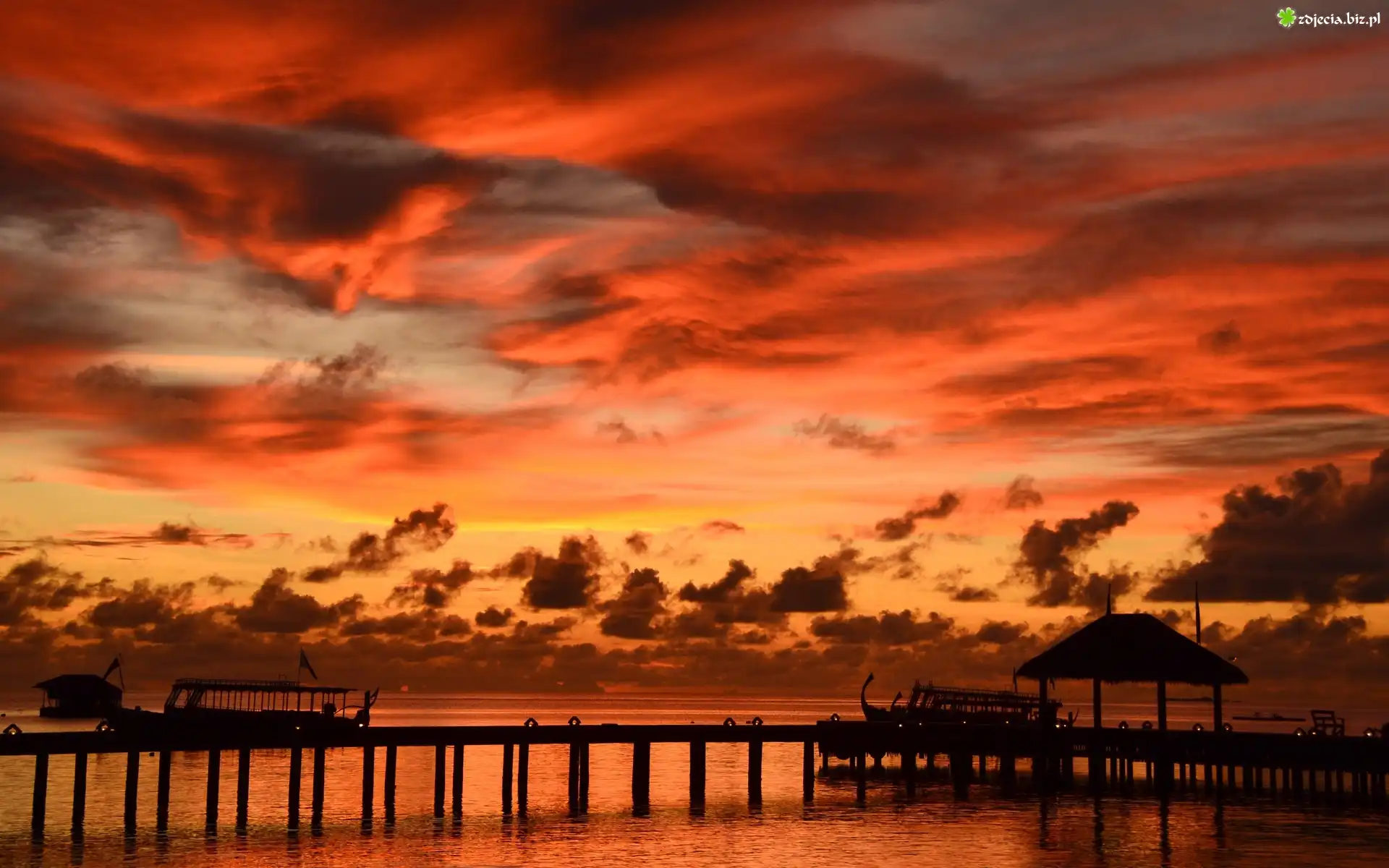 Zdjęcie Zachód, Słońca, Morze, Molo, Przystań