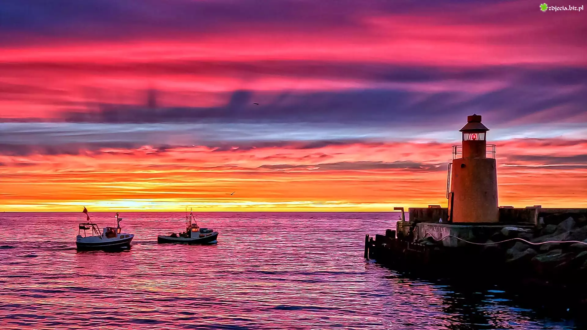 Zdjęcie Zachód Słońca, Morze, Latarnia, Morska, Kutry