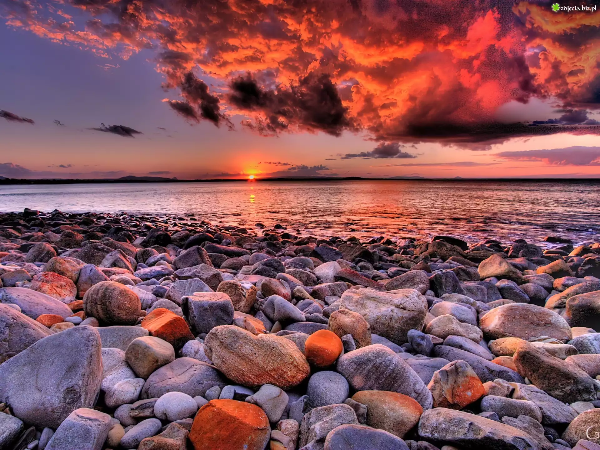 Zdjęcie Zachód, Słońca, Kamienie, Morze, Chmury