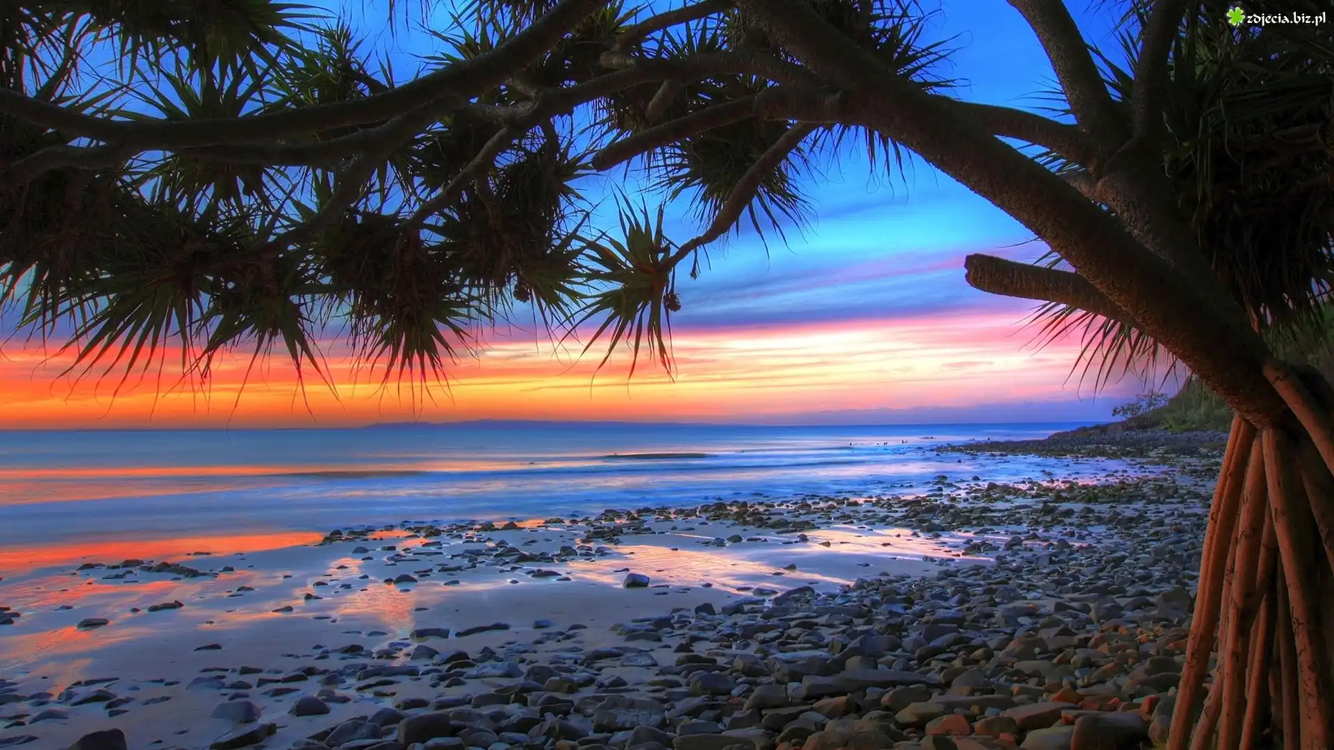 Zdjęcie Zachód, Słońca, Plaża, Morze, Drzewo