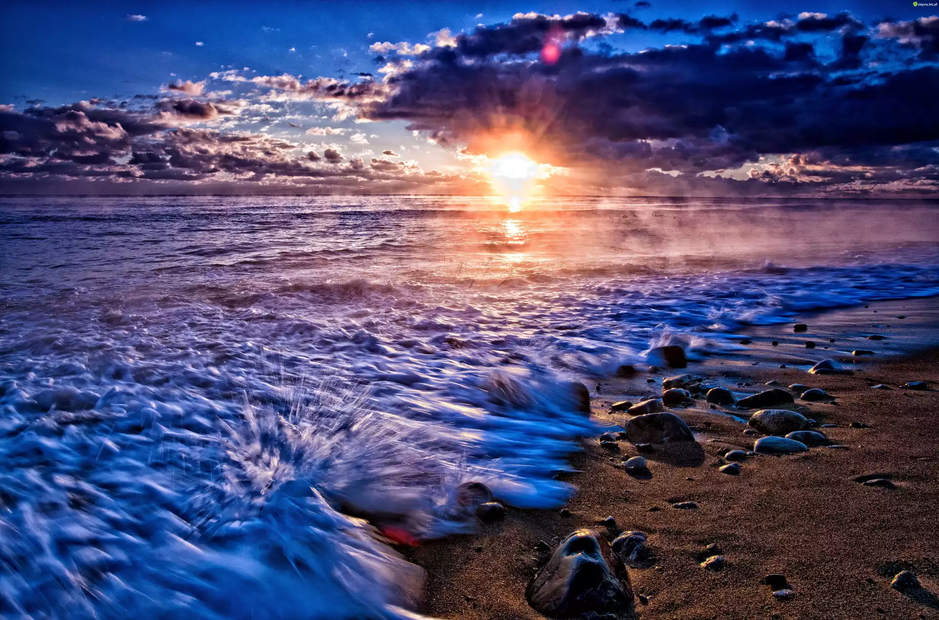 Zdjęcie, Morze, Zachód, Słońca