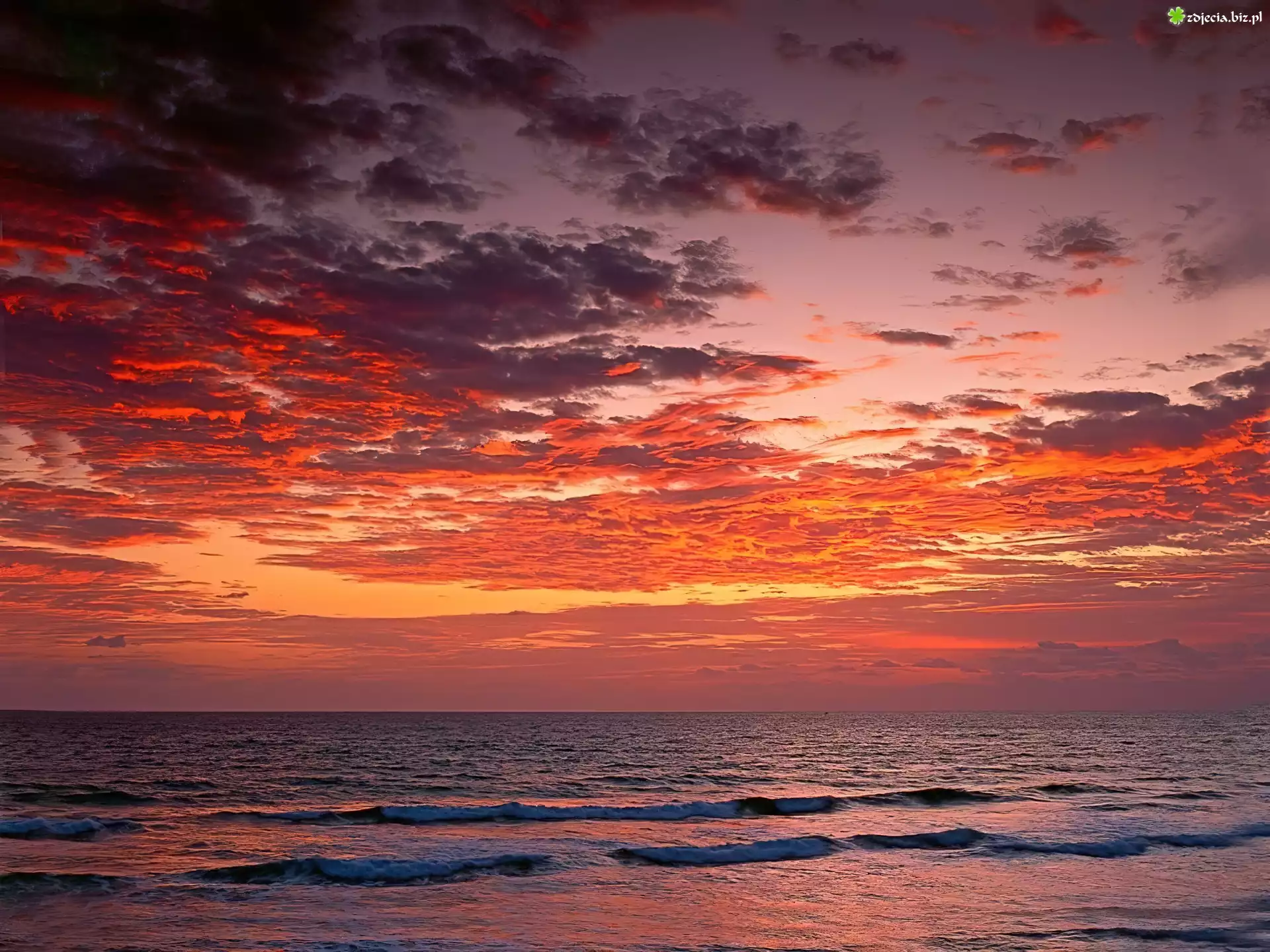 Zdjęcie, Zachód Słońca, Morze, Chmury