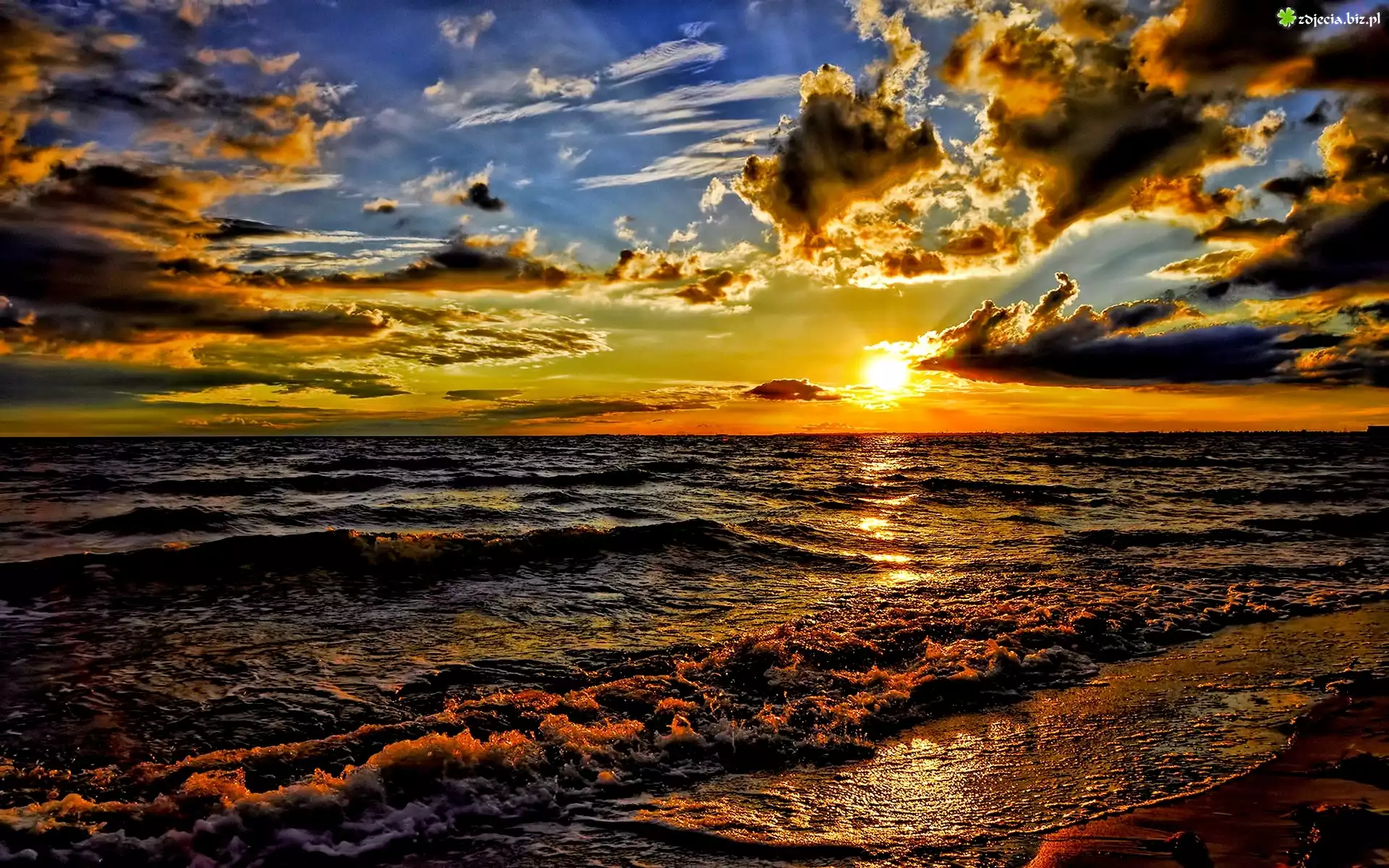 Zdjęcie Zachód, Słońca, Morze, Fale