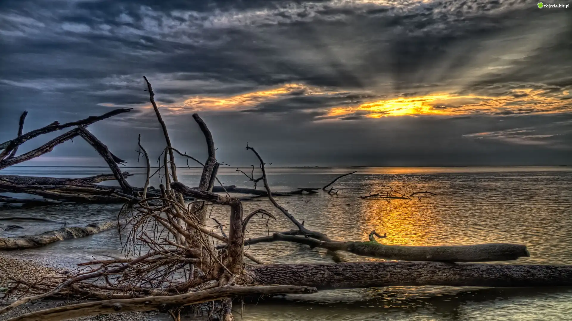 Zdjęcie Zachód, Słońca, Morze, Konary