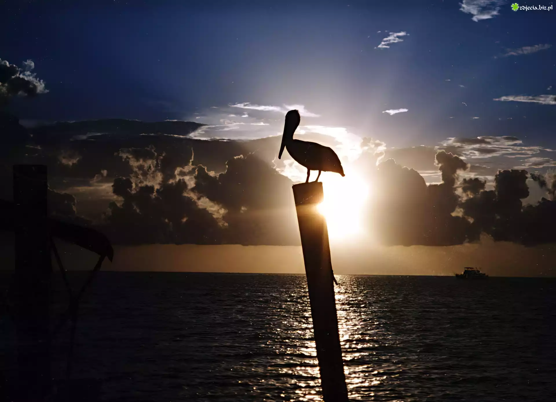 Zdjęcie Zachód, Słońca, Morze, Pelikan