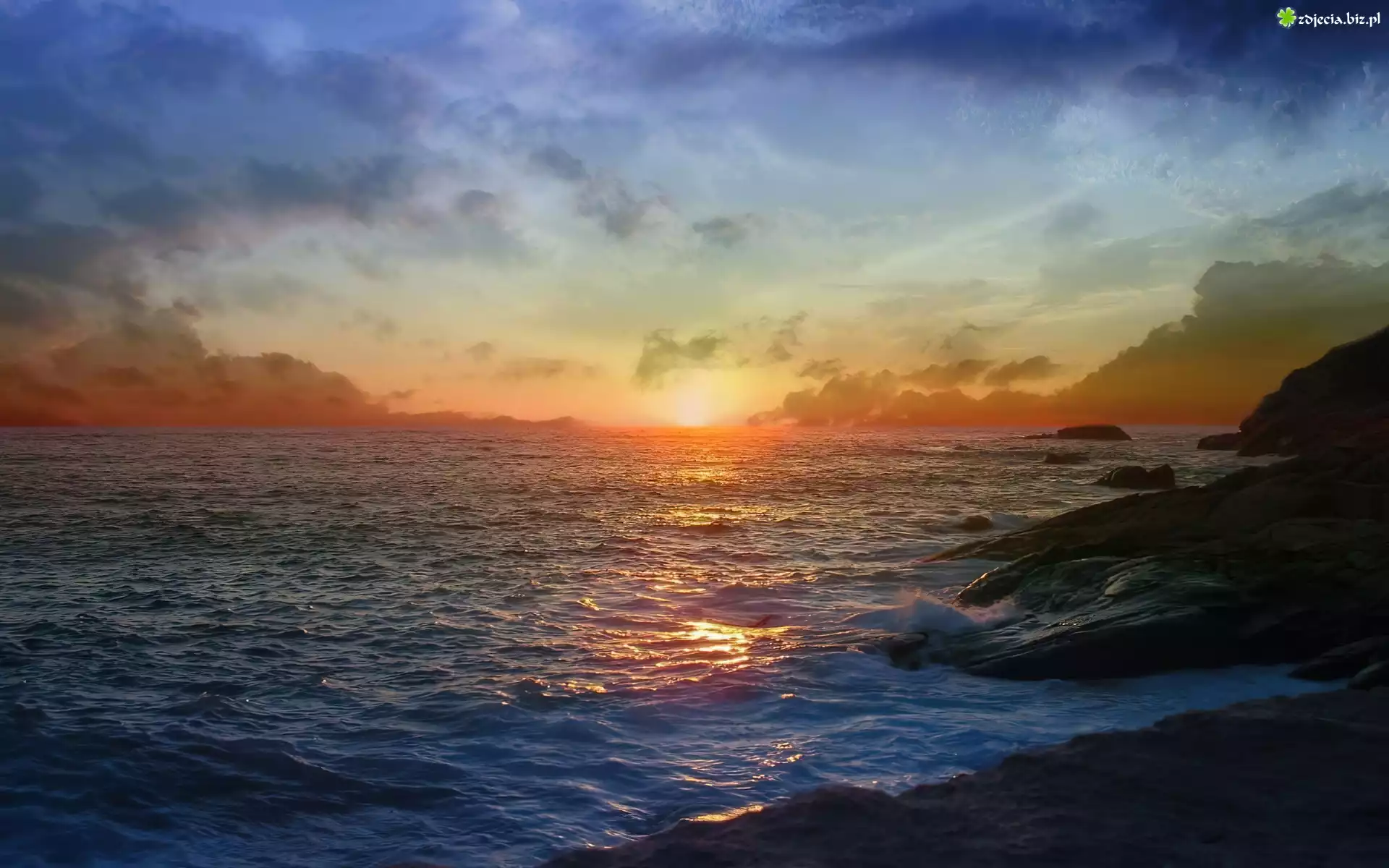Zdjęcie Zachód, Słońca, Morze, Skałki