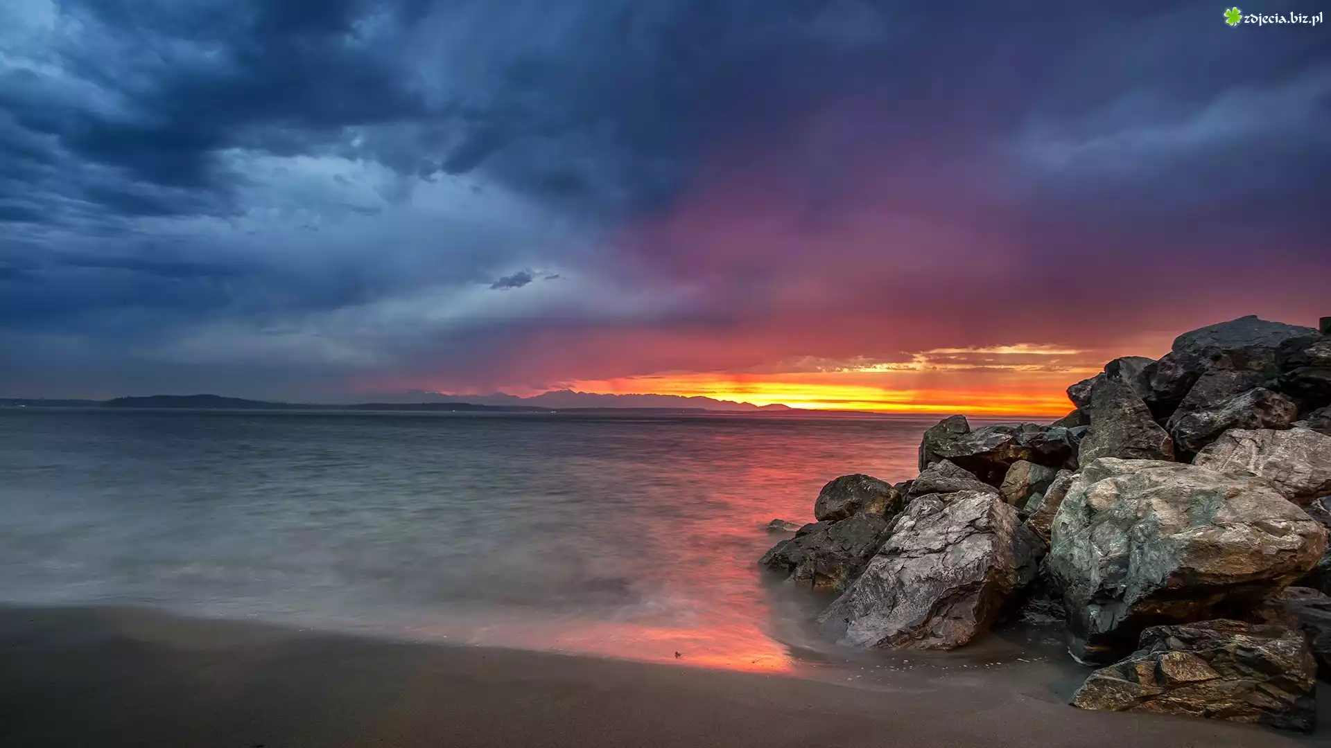 Zdjęcie Zachód, Słońca, Morze, Skały
