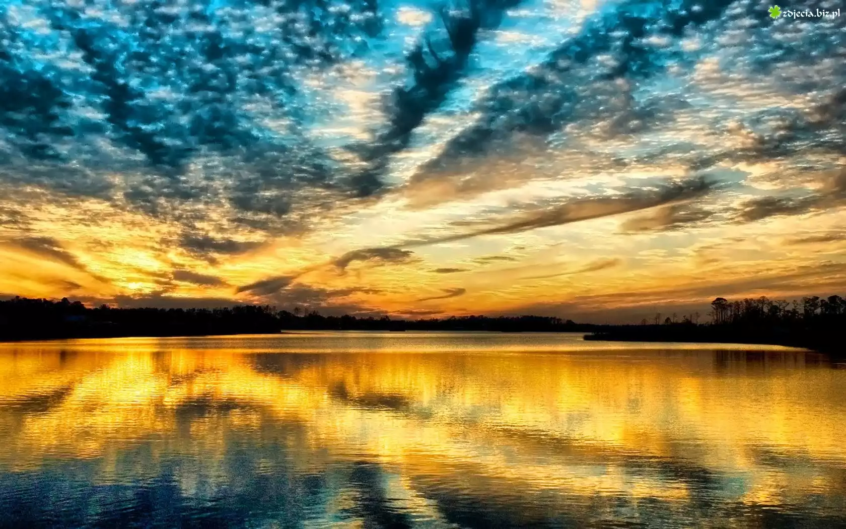 Zdjęcie Zachód, Słońca, Chmury, Niebo, Jezioro