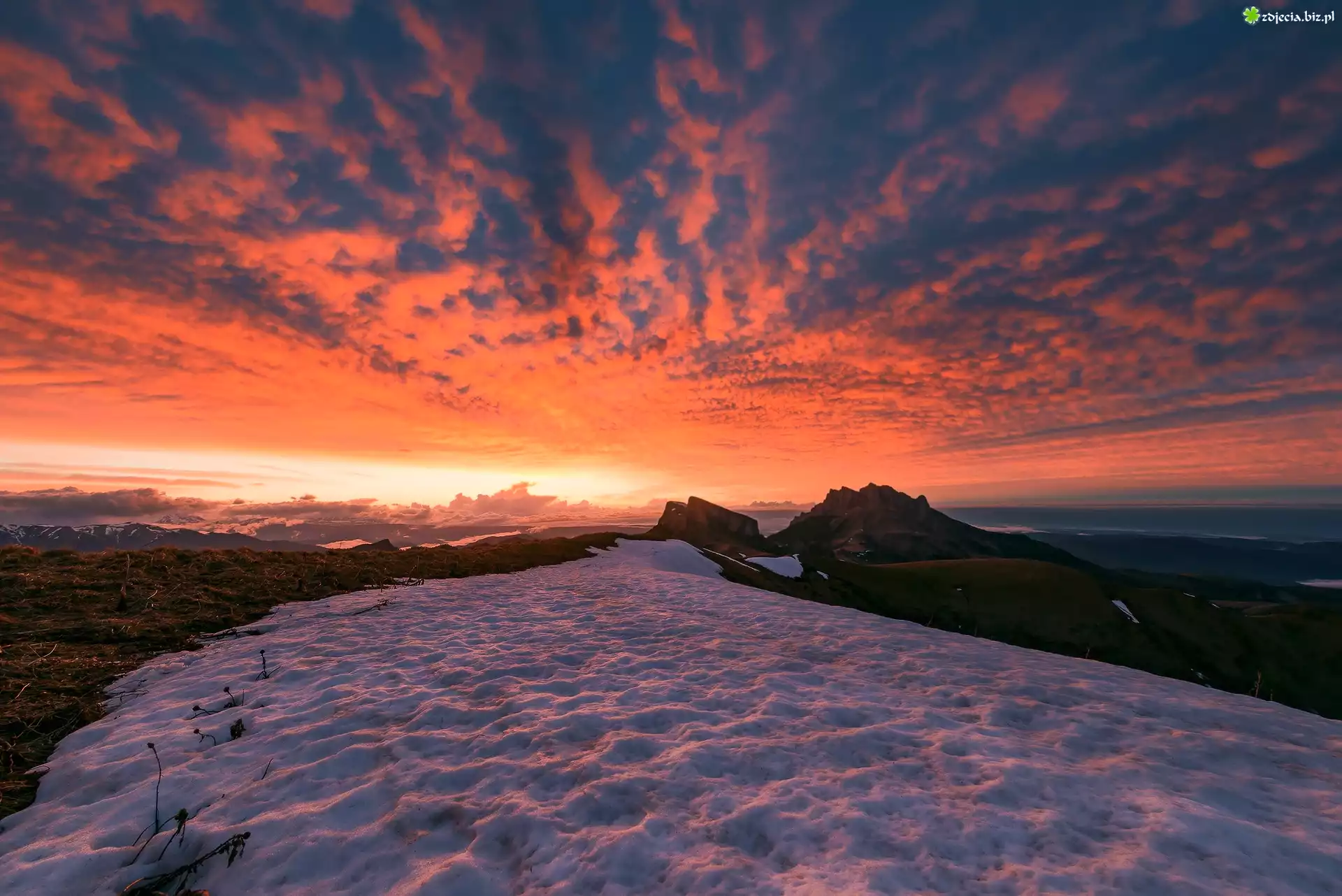 Zdjęcie Zachód Słońca, Śnieg, Góry, Niebo, Chmury