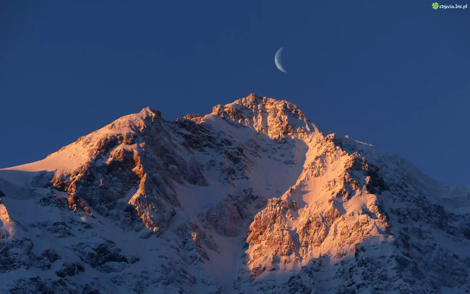 Zdjęcie Zachód, Słońca, Góry, Śnieg, Księżyc