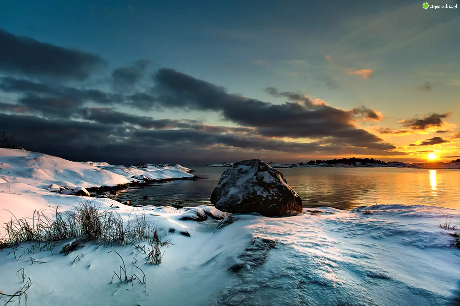 Zdjęcie Zachód, Słońca, Morze, Śnieg, Chmury