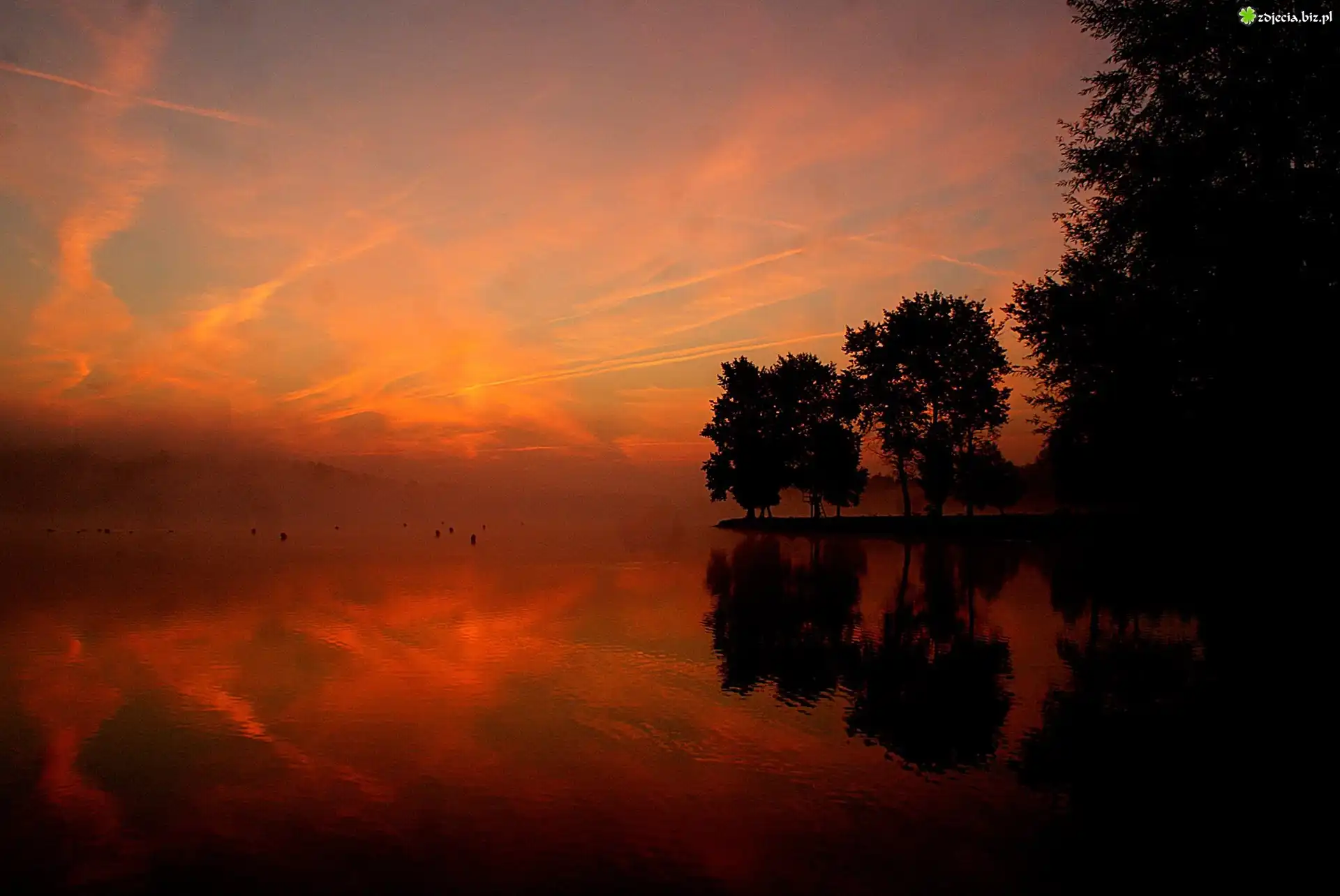 Zdjęcie Zachód, Słońca, Jezioro, Odbicie, Drzewa