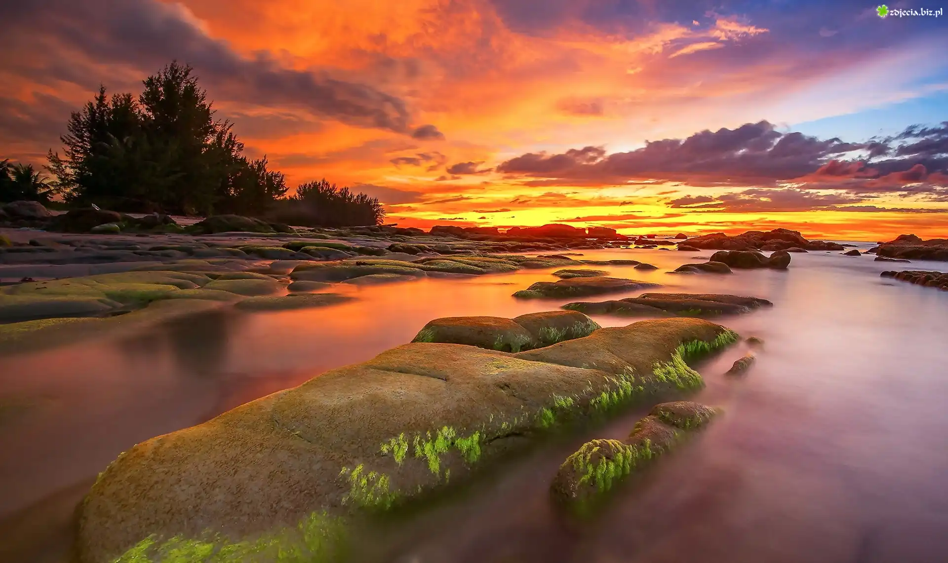 Zdjęcie Zachód Słońca, Morze, Odpływ, Kamienie