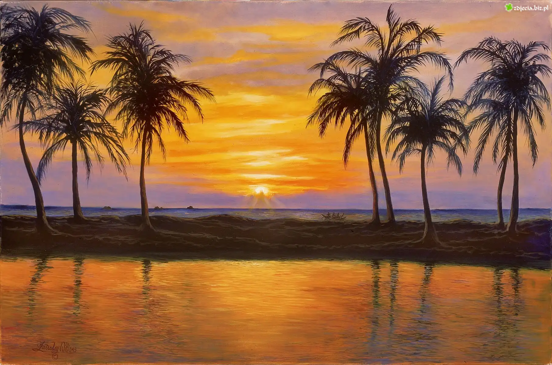 Zdjęcie Zachód Słońca, Palmy, Woda