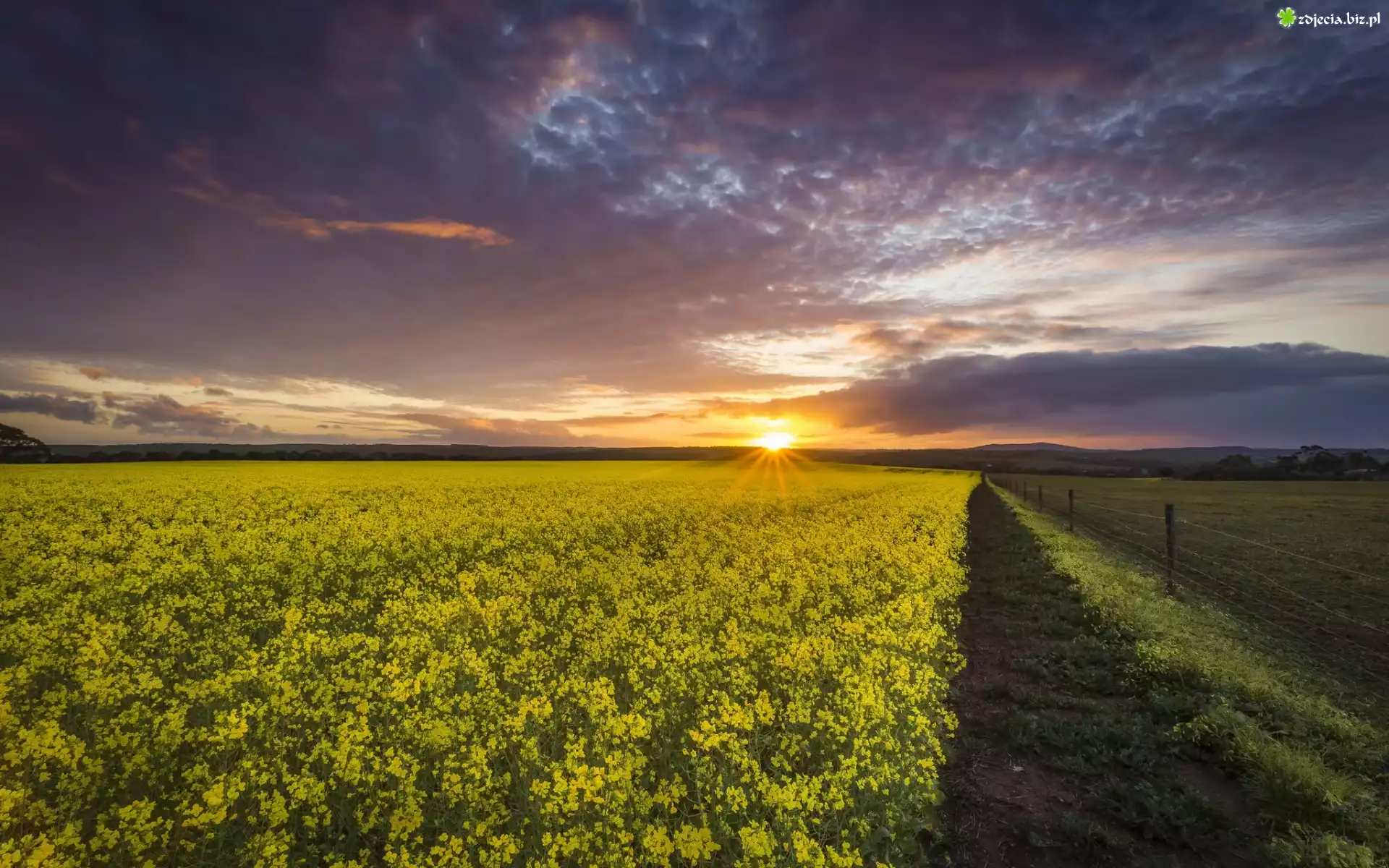 Zdjęcie Zachód słońca, Pole, Rzepak