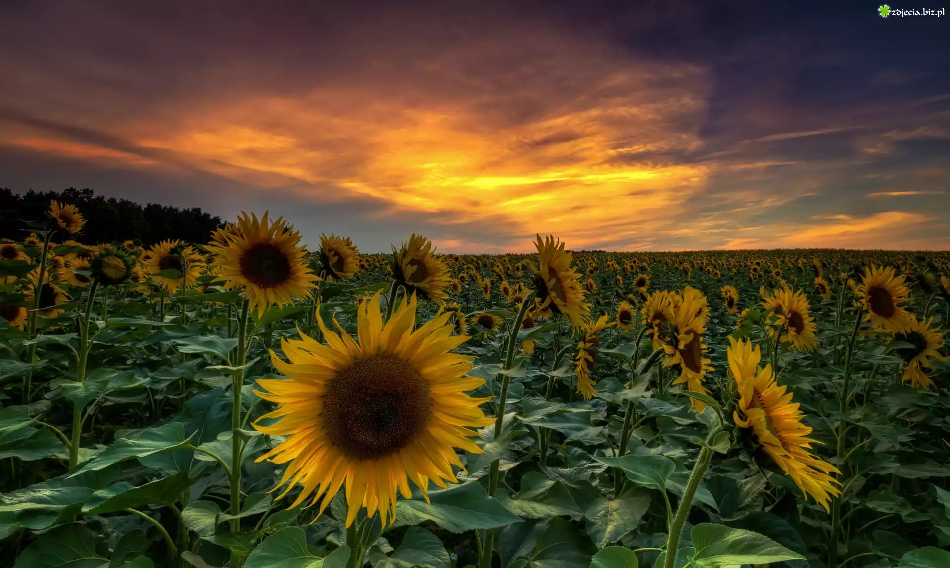 Zdjęcie Zachód słońca, Pole, Słoneczniki