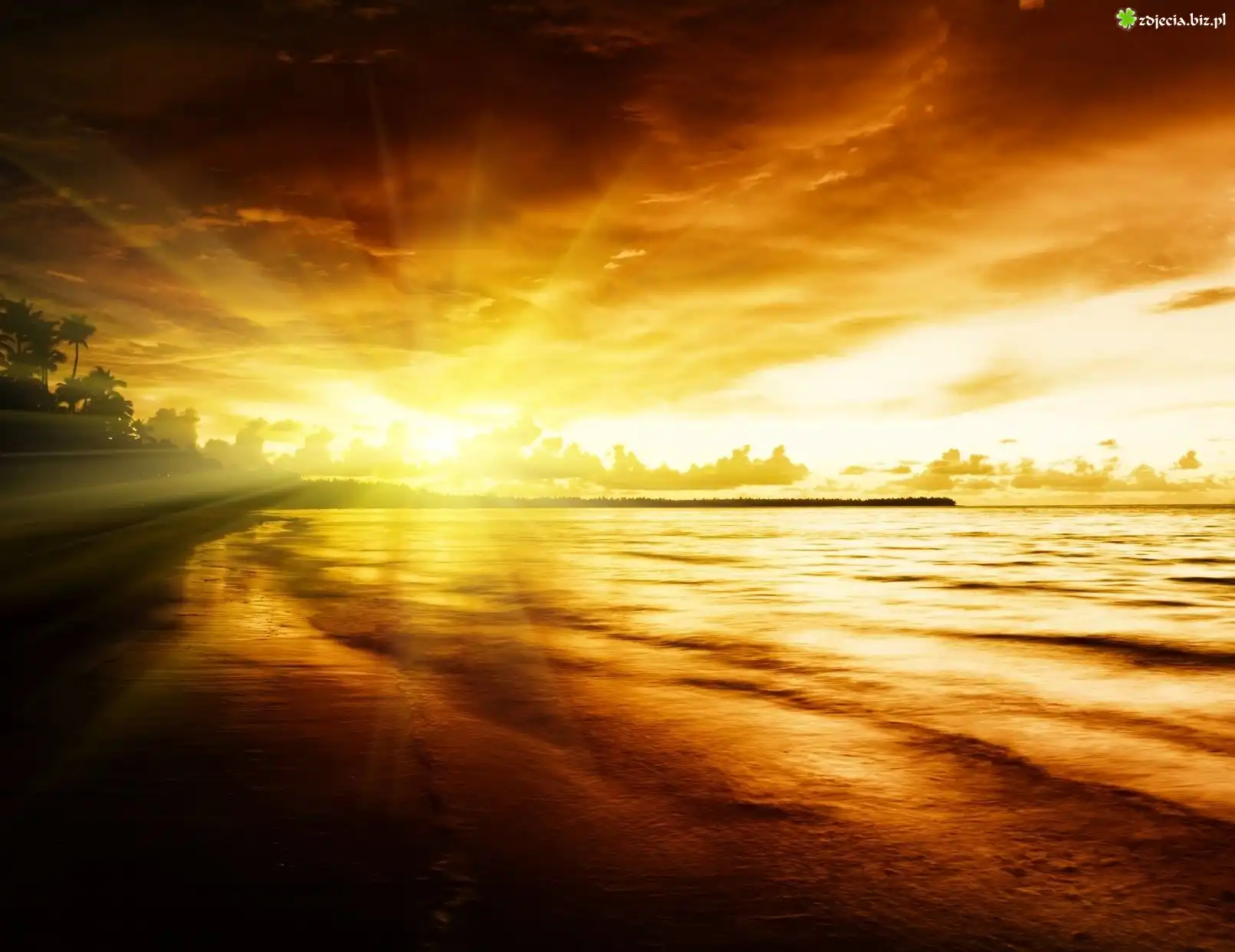 Zdjęcie Zachód, Słońca, Promienie, Morze