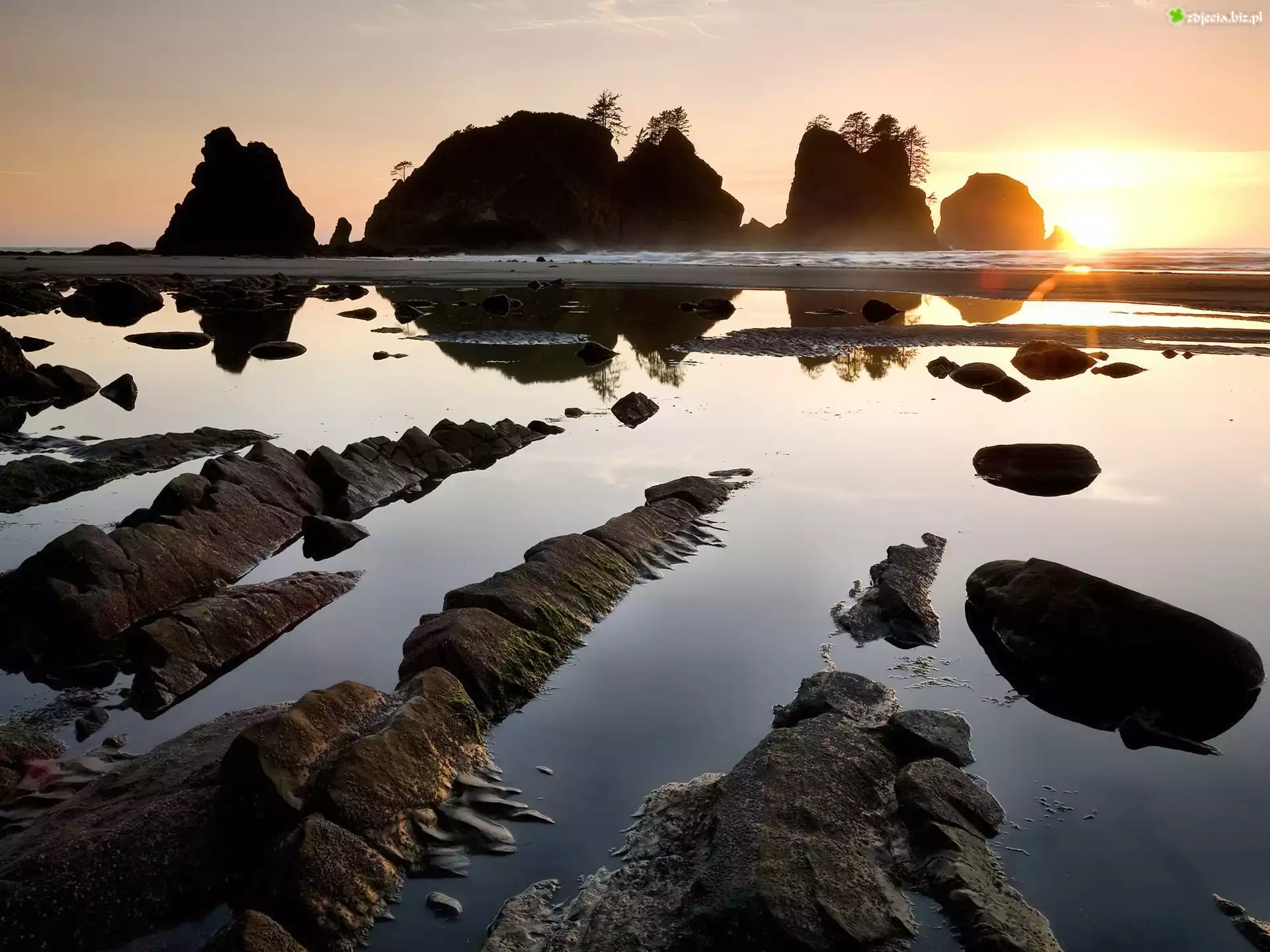 Zdjęcie Zachód, Słońca, Promienie, Skały