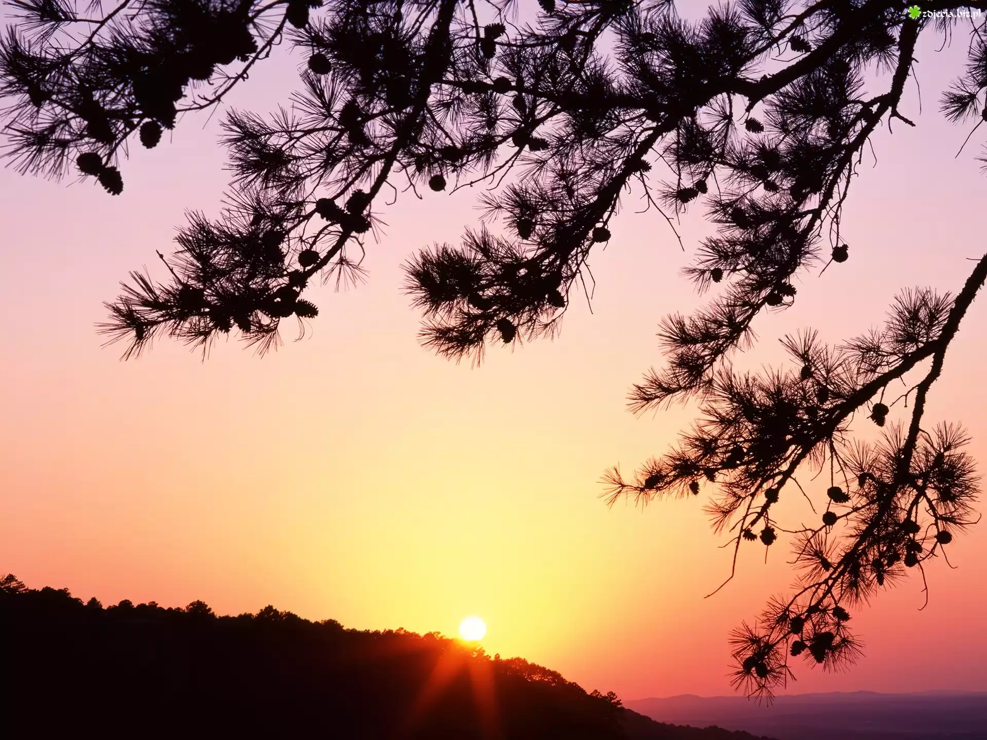 Zdjęcie, Zachód, Słońce, Promienie, Gałęzie