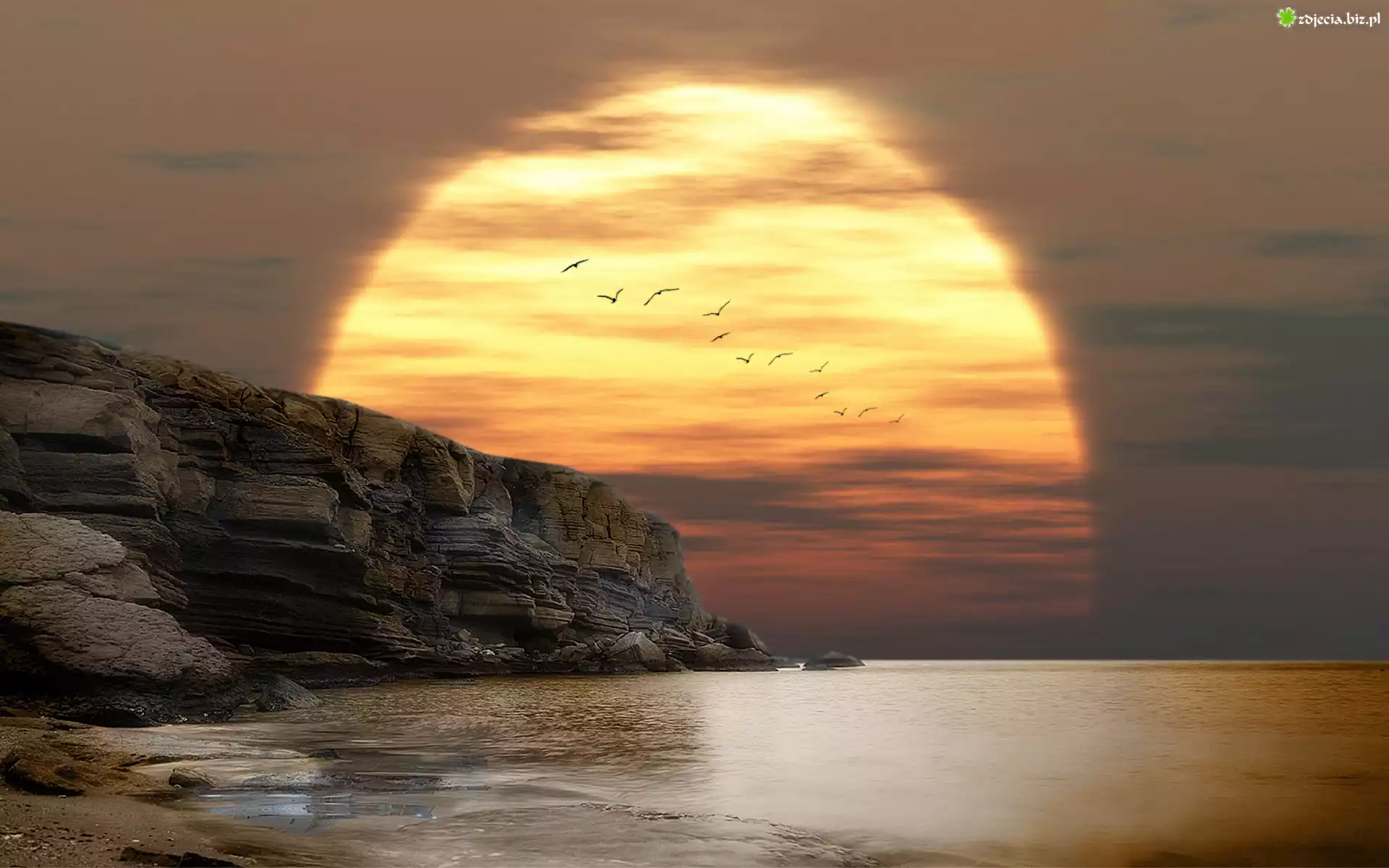 Zdjęcie Zachod, Słońca, Ptaki, Klif