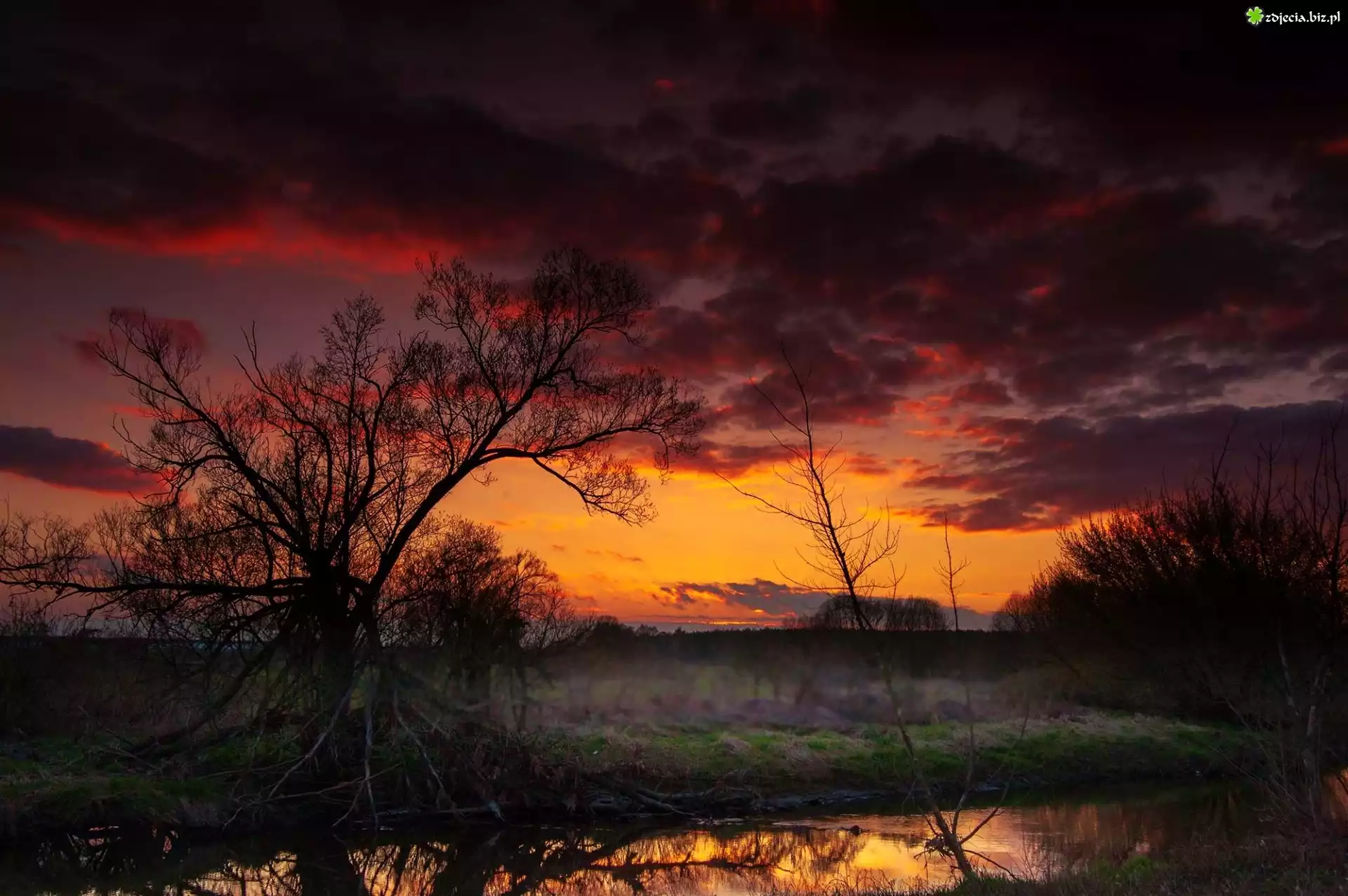 Zdjęcie Zachód, Słońca, Rzeczka, Zarośla