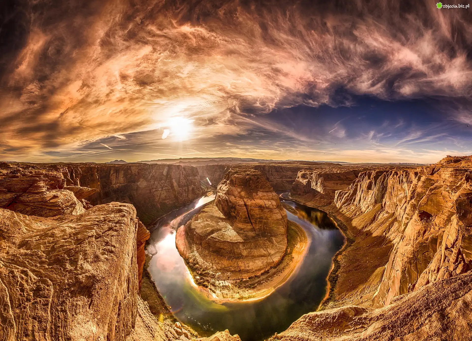 Zdjęcie Zachód, Słońca, Kanion, Rzeka, Chmury