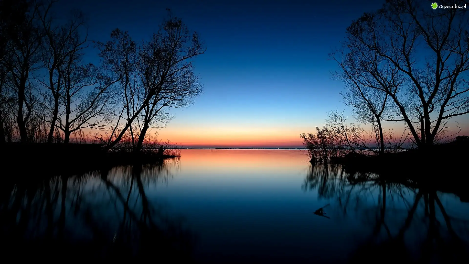 Zdjęcie Zachód słońca, Rzeka, Drzewa