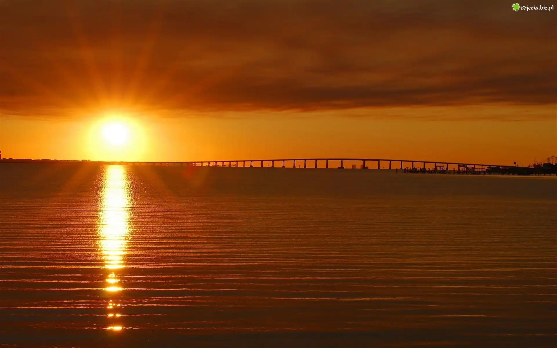 Zdjęcie Zachód, Słońca, Rzeka, Most