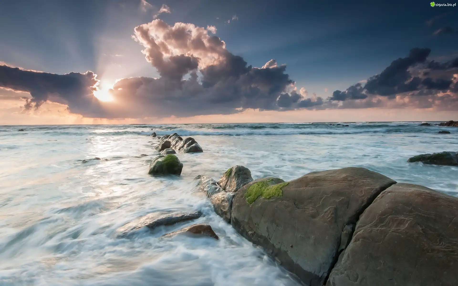 Zdjęcie Zachód, Słońca, Morze, Skały, Chmury