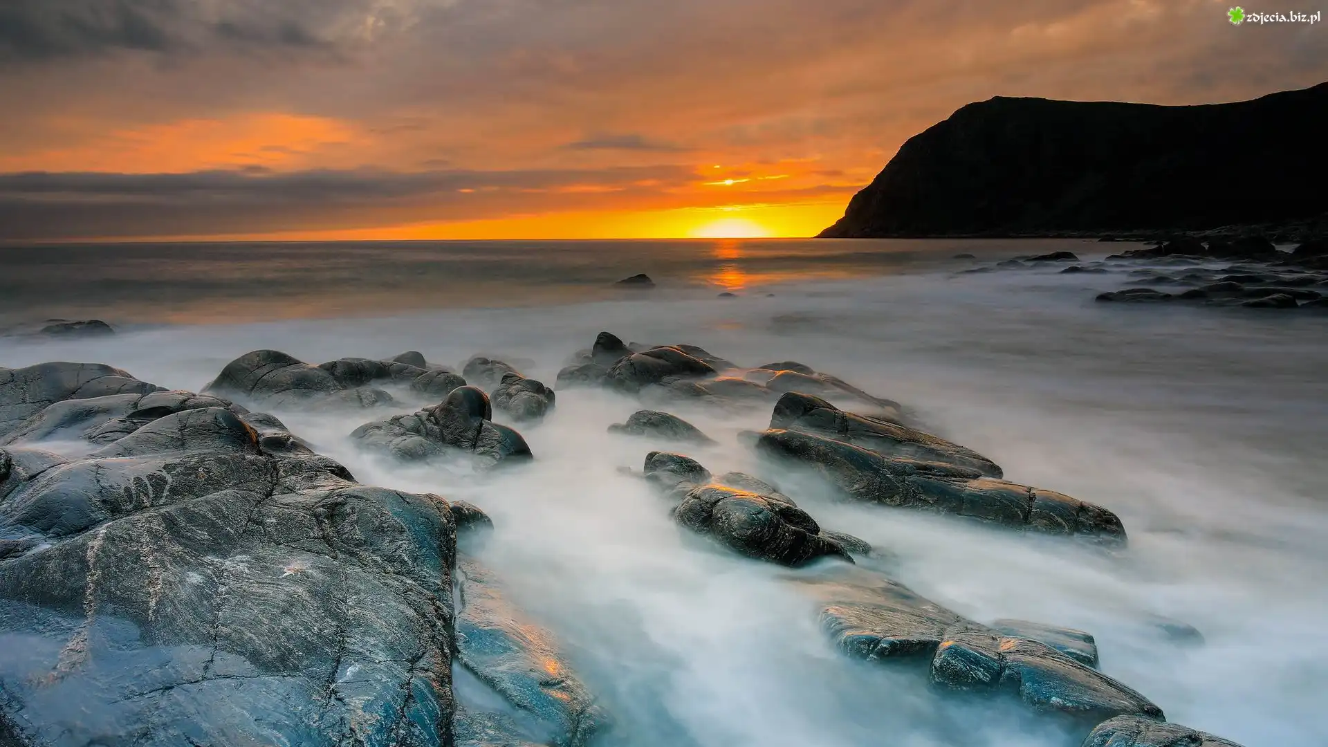 Zdjęcie Zachód słońca, Morze, Skały, Góry