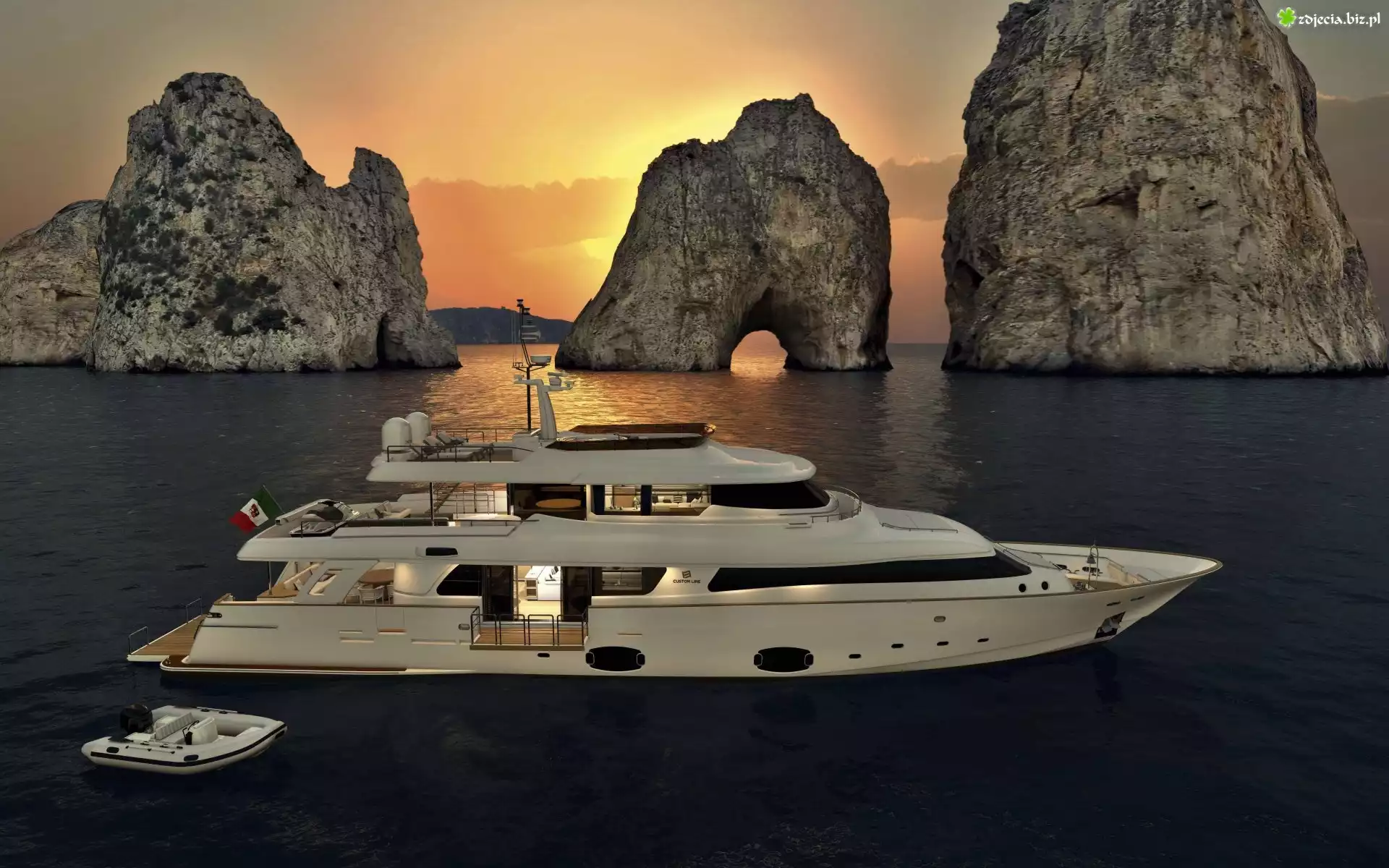 Zdjęcie Zachód Słońca, Morze, Skały, Jacht