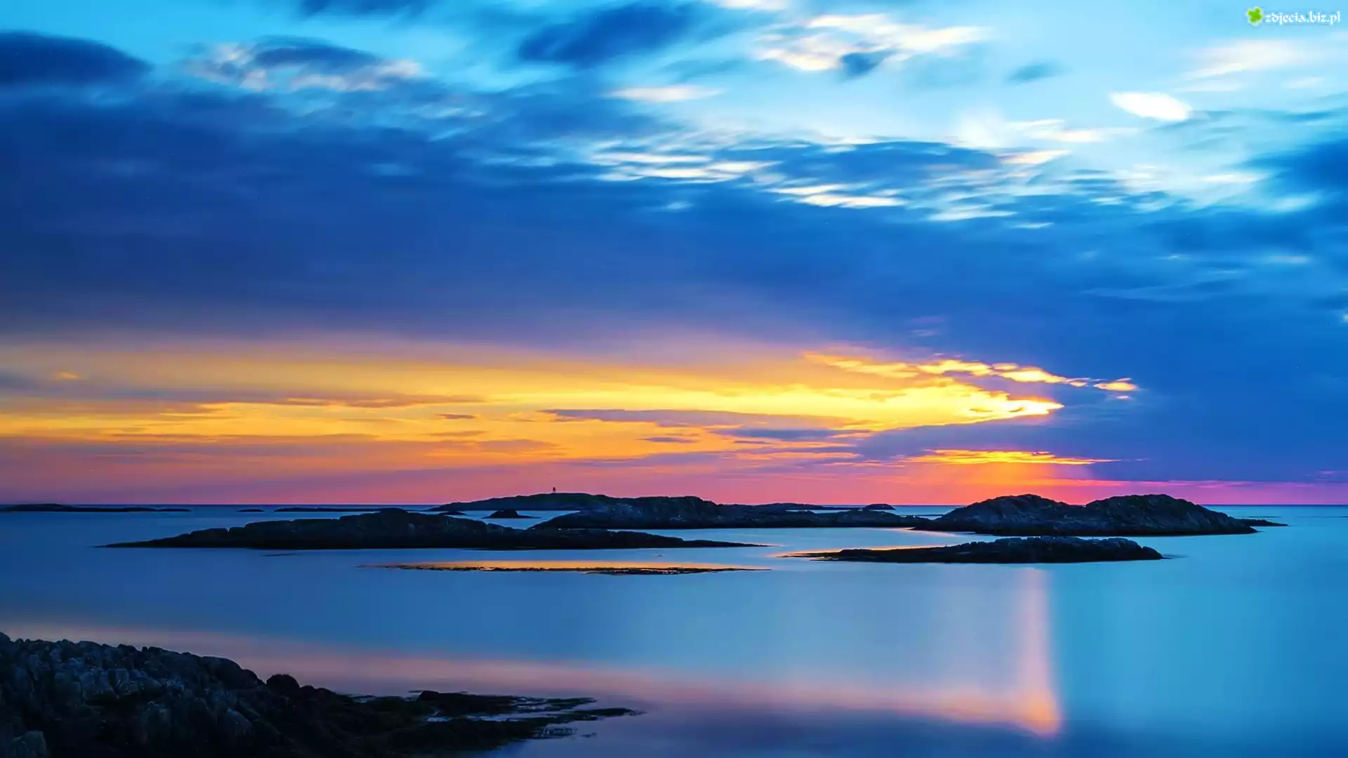 Zdjęcie Zachód, Słońca, Morze, Skały, Niebo