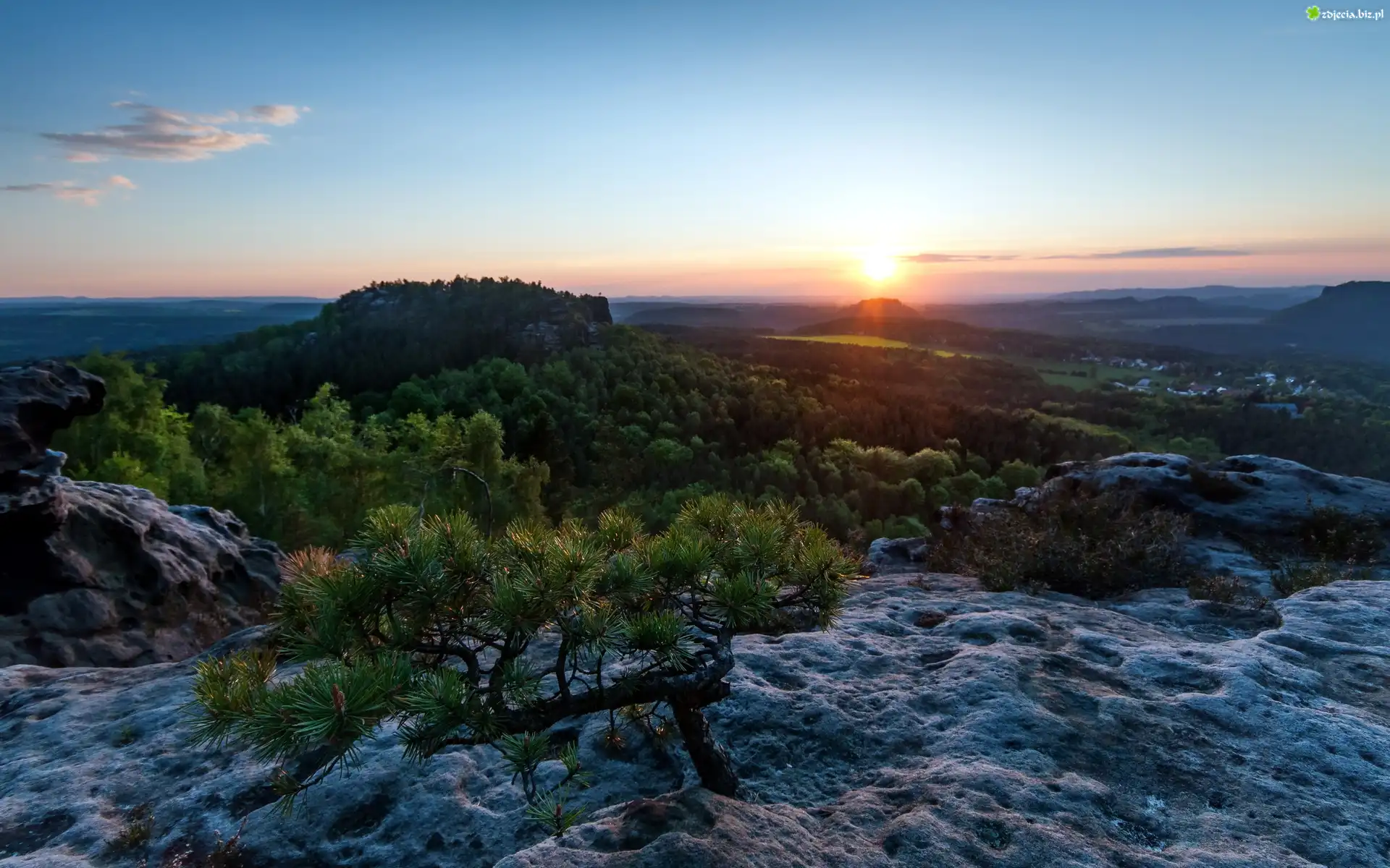 Zdjęcie, Zachód, Słońca, Skały, Las