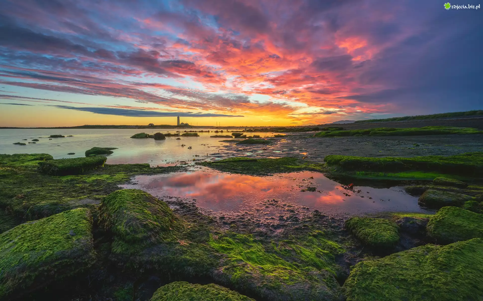 ZdjÄ™cie Morze, Latarnia morska, Grotta Island Lighthouse, Zachód sÅ‚oÅ„ca, Wybrzeże, ReykjavÃk, Islandia |