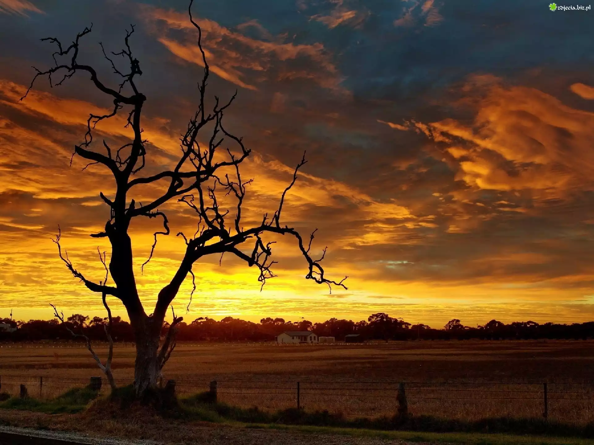 Zdjęcie Zachód, Słońca, Suche, Drzewo